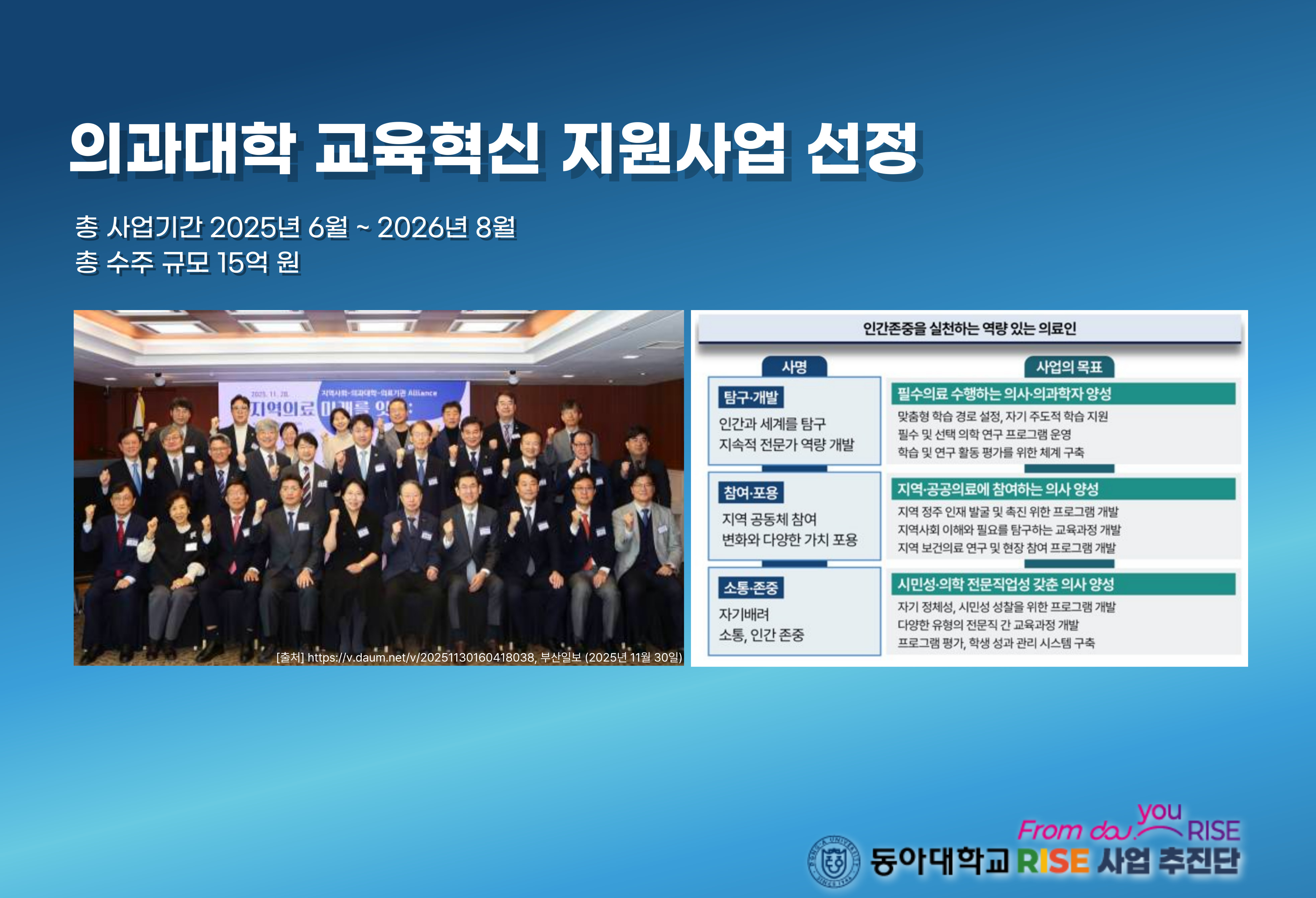 메인이미지 동아대학교 의과대학 Dong-A University College of Medicine 동아의대 40년의 발자취, 미래를 열어가는 발걸음! 메인비주얼7 동아대학교 의과대학 Dong-A University College of Medicine 동아의대 40년의 발자취, 미래를 열어가는 발걸음! 의예과 메인비주얼 동아대학교 의과대학 Dong-A University College of Medicine 동아의대 40년의 발자취, 미래를 열어가는 발걸음! 의예과 메인비주얼2 동아대학교 의과대학 Dong-A University College of Medicine 동아의대 40년의 발자취, 미래를 열어가는 발걸음! 의예과 메인비주얼3 동아대학교 의과대학 Dong-A University College of Medicine 동아의대 40년의 발자취, 미래를 열어가는 발걸음! 의예과 메인비주얼4 동아대학교 의과대학 Dong-A University College of Medicine 동아의대 40년의 발자취, 미래를 열어가는 발걸음! 의예과 메인비주얼5 동아대학교 의과대학 Dong-A University College of Medicine 동아의대 40년의 발자취, 미래를 열어가는 발걸음! 이전 장면 다음 장면 정지 재생 교수공지사항 교수공지사항MORE 입학안내 학사일정 공동기기 이용 시신기증 발전기금후원 규정 DONG-A NEWS 학생공지사항 더보기 POPUP ZONE 01 이전 장면 정지 재생 다음 장면 DONG-A UNIVERSITY 의과대학 의과대학 사명 동아대학교 의과대학 VIEW MORE 학생회 동아대학교 의과대학의 소식을 알려드립니다. PREV NEXT 정지 재생 보러가기 배너모음 이전 장면 정지 재생 다음 장면